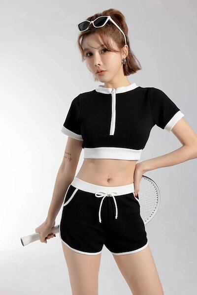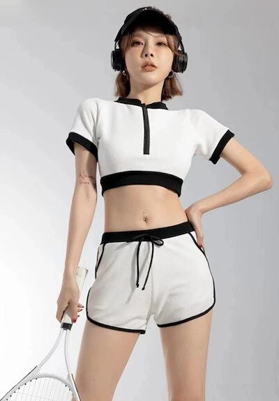 水着 韓国ファッションの水着 2025新作 温泉水着着痩せ控えめセパレートまとめビキニハイウエスト3枚組ガーゼ水着 水着 体型力バー レディースorange