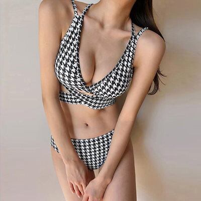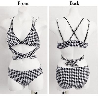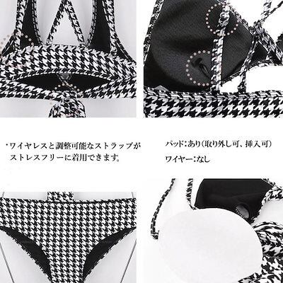 2025新作水着 レディース水着 可愛いビキニ 水着 千鳥柄 バックリボン スイムウェア