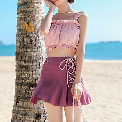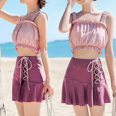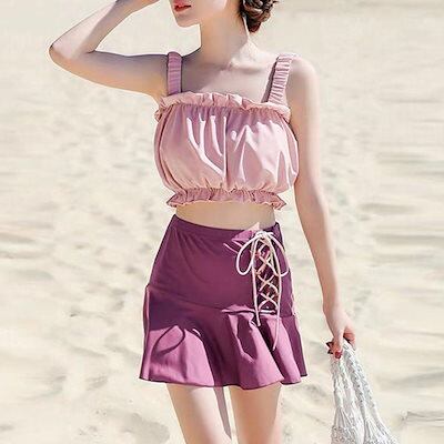 2025新作水着 レディース水着 可愛いビキニ 水着レディース ビキニスカート3点セット