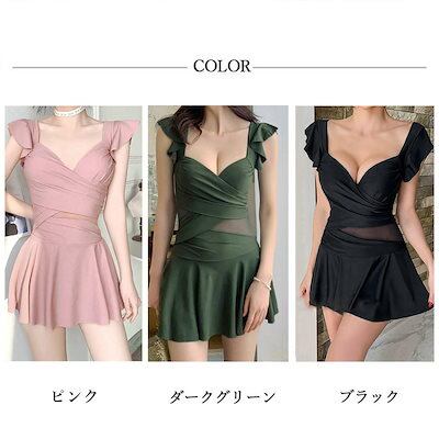 2025新作水着 レディース水着 可愛いビキニ ワンピース水着 体型カバー 3色