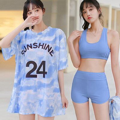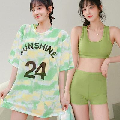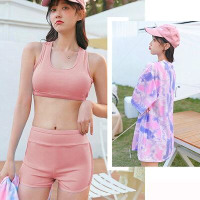 2025新作水着 レディース水着 可愛いビキニ ラッシュガード付き ビキニ水着3点セット