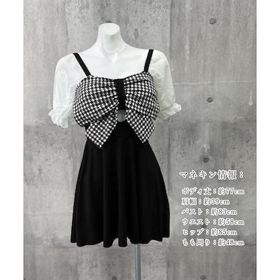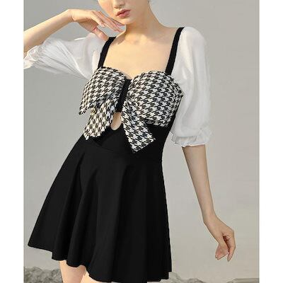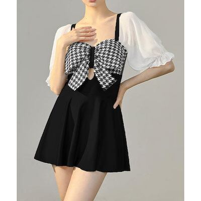 2025新作水着 レディース水着 可愛いビキニ 千鳥格子 ワンピース水着 パフスリーブ