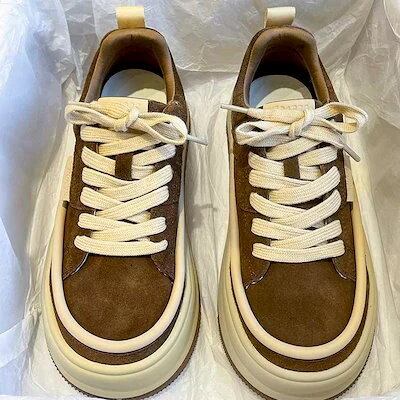 復古ジンジャーイエロー厚底白供vibe風超軽量耐摩耗学生用靴