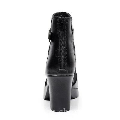 ブーツサンダルレディースブーサンオープントゥバックジップ通気メッシュブラックハイヒール太ヒールストー