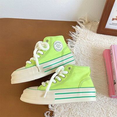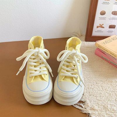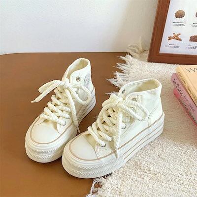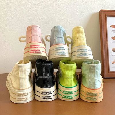 新作 厚底 スニーカー ハイカット ズック靴 レディース 靴 韓国 フラットシューズ 厚底シューズ 流行り 快適 百掛け