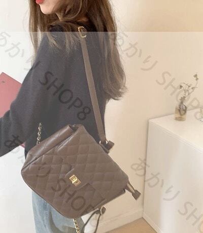 新品追加 2色 バッグ かばん 鞄 レディース リュックサック バックパック 大容量 黒 茶色 無地 チェーンストラップ ステッチ お洒落 きれいめ 肩がけ 手提げ バック ハンドバッグ 大人可愛い