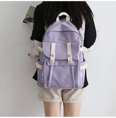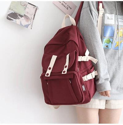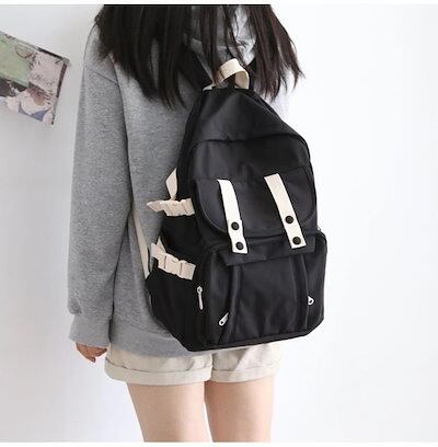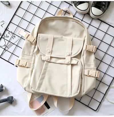 ボタンの下にもポケット付き 5カラー シンプルデザイン バックパック リュック ポケット付き 通学 塾 学生 レディース カバン バッグ ナチュラル