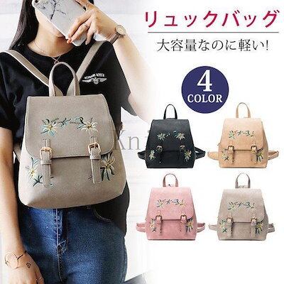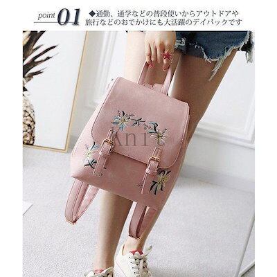 超人気 フラップリュック刺繍花柄フェイクレザー防水小さめおしゃれ大容量レディースリュックサックエコバッグ