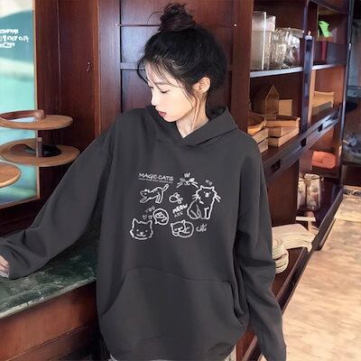 パーカー カップルドレスセーター新しいシンプルなレジャーフード付きトップス