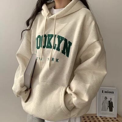 パーカー 刺繍文字のセーター レディース フード付き緩い春秋と冬の厚さとパッド入りのトップス