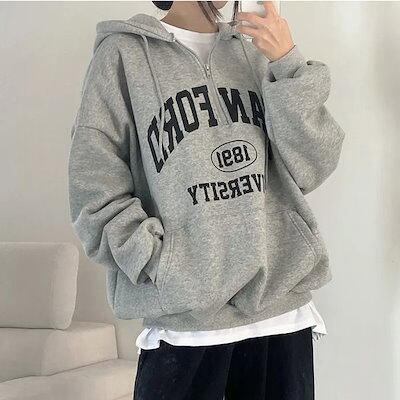 パーカー 中わたジップセーターの女性2024新しい女性の緩い秋と冬はジャケットのトップスを厚くした