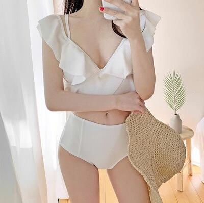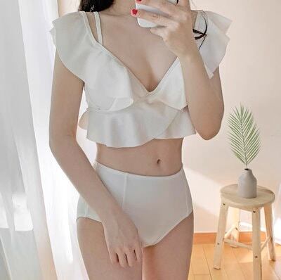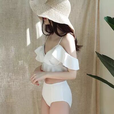 水着 ビキニ スイムウェア レディース 三角ビキニ セパレート ノンワイヤー パッド付き フリル セット ツーピース 上下セット 大人可愛い きれいめ シンプル ナチュラル 大人っぽい おしゃれ
