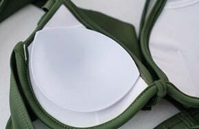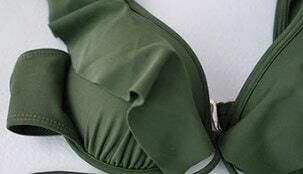 水着 ビキニ スイムウェア レディース 紐 三角ビキニ セパレート ノンワイヤー パッド付き フリル セット 上下セット きれいめ 大人っぽい おしゃれ お洒落 レトロ 存在感 クール モード系