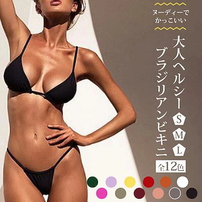 ブラジリアンビキニ マイクロビキニ レディース 水着 ビキニ ブラジリアン セクシー セット 紐ビキニ 三角 トライアングル Tバッグ 無地 女の子 かっこいい 海外 露出 黒 白 グレー ピンク パ