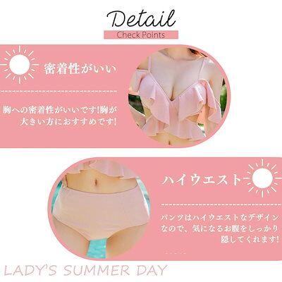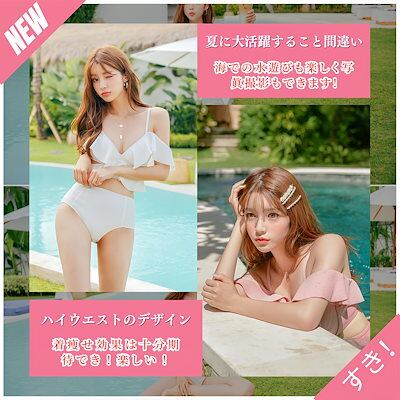 レディース ビキニ 水着 フリル Vネック ストラップ 三角ビキニ ハイウエスト オフショルビキニ セクシー 韓国 トレンド 水着 ビーチ プール リゾート ピンク 大人可愛い 女性用水着 女の子 水