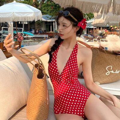 激安水着人気沸騰韓国ファッション赤い波は首を掛けてセクシーなv連体の三角の海辺の休暇の水着を持ちますカラコンアヌアパックナイトブラスニーカー 女の子 水着 レディース 可愛い 大きいサイズ 大人用 水