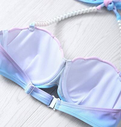 水着 レディース ビキニ セパレート 2点上下セット セクシー シェル 貝殻型 グラデーション色 三角ビキニ ブラ ショーツ パールつき 人工真珠 ビーチリゾート 大きいサイズ 小胸 バストアップ ワ