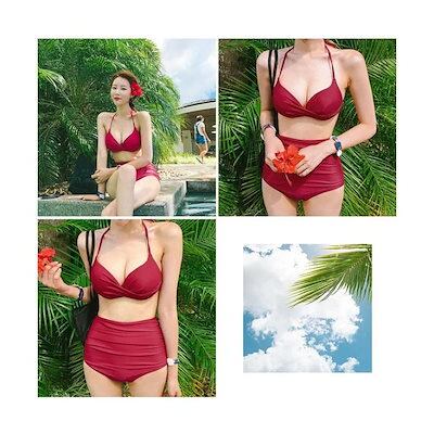 期間限定 水着 ビキニ レディース 無地 ホルターネック ワイヤービキニ セクシー バスト 盛れる 2点セット 女性用 三角ビキニ セパレート 温泉着 女の子 水着 レディース 可愛い 大きいサイズ