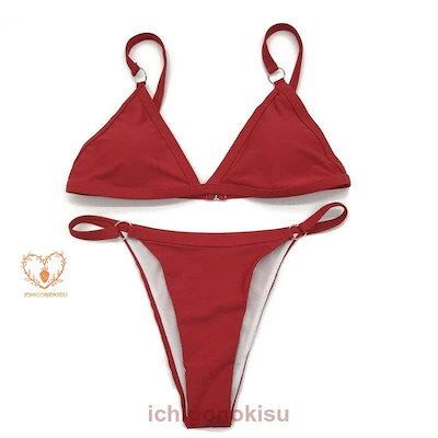 水着 三角形ビキニ レディース 三角 トライアングル ビキニ 調整可能 背中がきれいに見える 原色 白 黄色 赤 黒 オレンジ リング ストラップ付 女の子 水着 レディース 可愛い 大きいサイズ 大