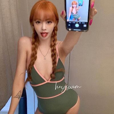 4色】韓国イン バックレス セクシー シンプル レトロカラー 貧乳 温泉 ワンピース 三角 リゾート水着 レディース ワンピース水着 日焼け防止水着 分割水着 女の子 水着 レディース 可愛い 大きい