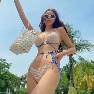 水着ストラップ付き女性用水着3点ビキニ三角プッシュアップチェストビーチバケーション 女の子 水着 レディース 可愛い 大きいサイズ 大人用 水着 体型カバー ラッシュガード スクール
