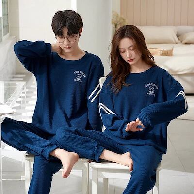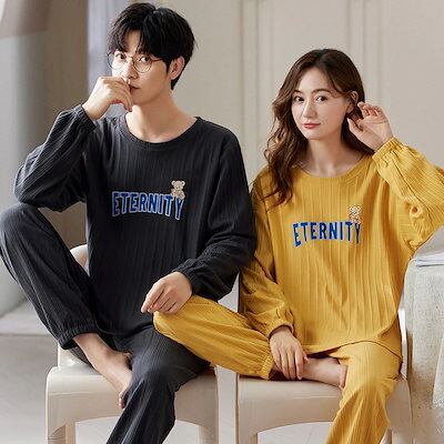 新作登場 2点パジャマ 長袖薄手 韓国風 可愛い 部屋着 綿 セットアップ カップル 春秋冬 長袖 前開き 恋人 ロングズボン 寝間着 お揃い ネグリジェ レディースメンズ orange