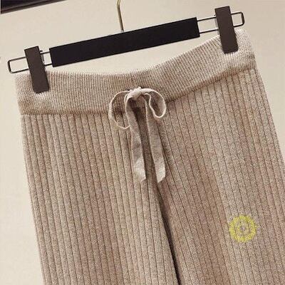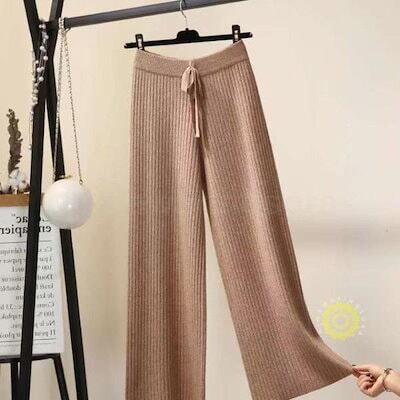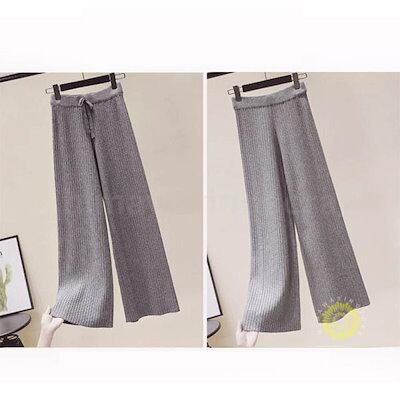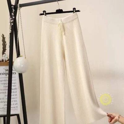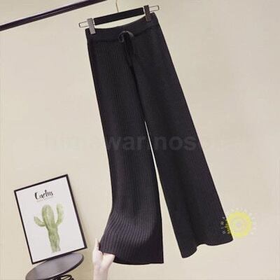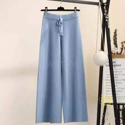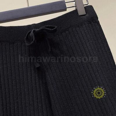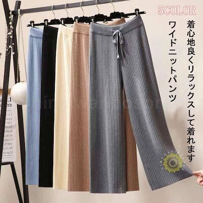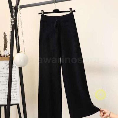 パンツ リブニットパンツ ワイドパンツ ロングボトムス 韓国風レディース 秋物 リブニット 着痩せ 体型カバー 秋冬用 通勤 お呼ばれ春パンツ ゆったり