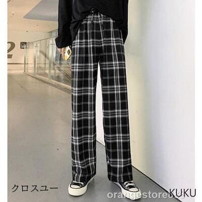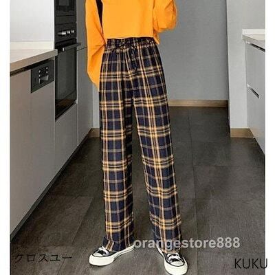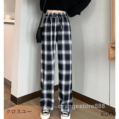 パンツ ロングパンツ レディース きれいめ ストレート 春 秋 冬 チェック柄 ワイドパンツ 秋 チェックパンツ ガウチョパンツ 美脚 着痩せ 大きいサイズ