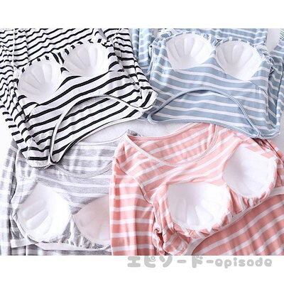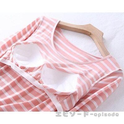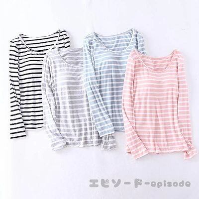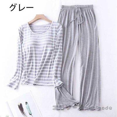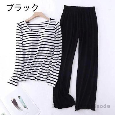 【人気商品】パジャマ レディース 春夏秋冬 色 長袖 丸首 ルームウェア 寝巻き 2点セット 綿 ストライプ 長ズボン Bra付き 寝間着 部屋着 体型カバー 韓国風 可愛い