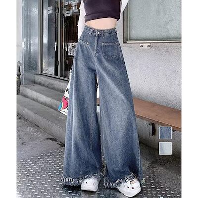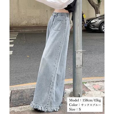 新追加 2025 新作春 脚長効果! デニムパンツ レディース ワイドデニムパンツ 裾フリンジ ジーパン