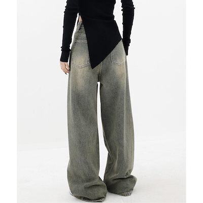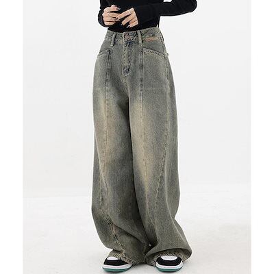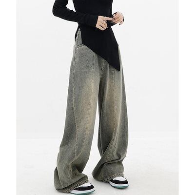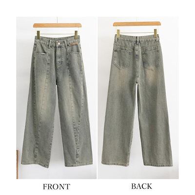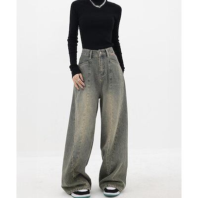 新追加 2025 新作春 脚長効果! デニムパンツ レディース ヴィンテージ風ワイドデニムパンツ美脚