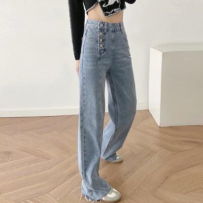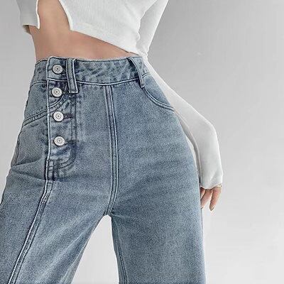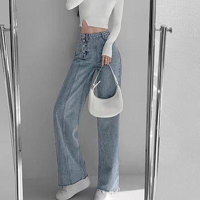 新追加 2025 新作春 脚長効果! デニムパンツ レディース デニムストレートパンツ ハイウエスト韓国