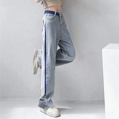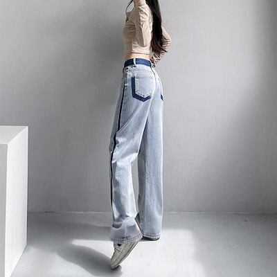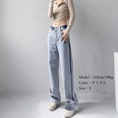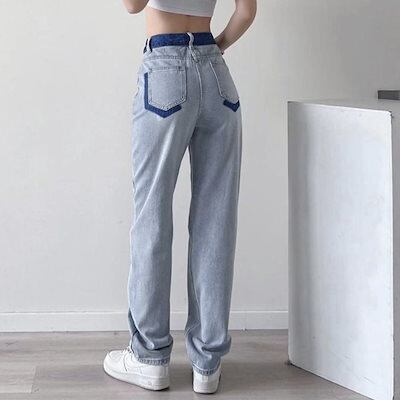 新追加 2025 新作春 脚長効果! デニムパンツ レディース 配色ストレートデニムパンツ ハイウエスト
