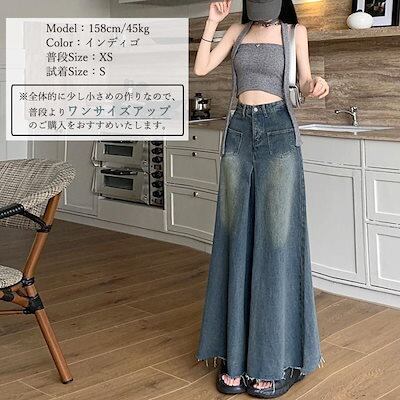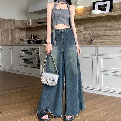 新追加 2025 新作春 脚長効果! デニムパンツ レディース ワイドデニム レディースフレアパンツ韓国