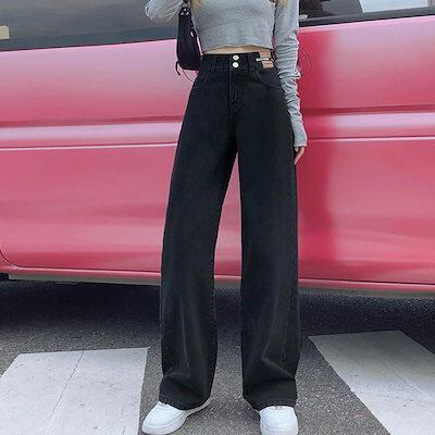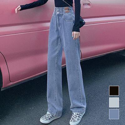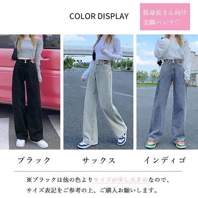 新追加 2025 新作春 脚長効果! デニムパンツ レディース ストレートデニムパンツ セミワイドパンツ