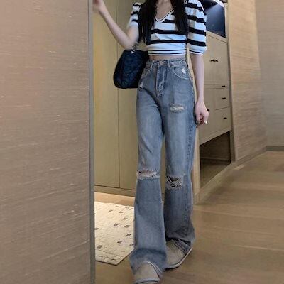 新追加 2025 新作春 脚長効果! デニムパンツ レディース ダメージデニムレディースクラッシュデニム