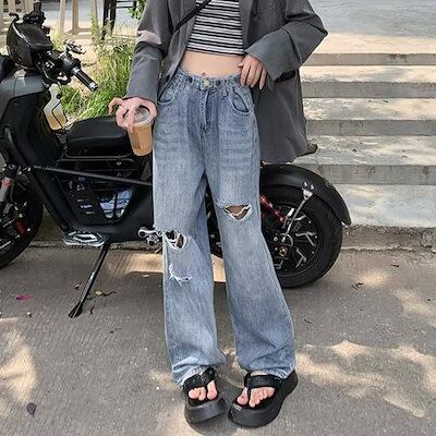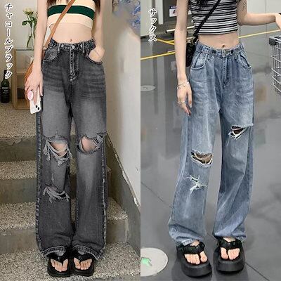 新追加 2025 新作春 脚長効果! デニムパンツ レディース ダメージジーンズ レディースデニムパンツ