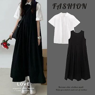 上下セット レディース 夏 半袖 tシャツ 2点セット ワンピース+ブラウス ルームウェア 水着 ビーチツアー ワンピース
