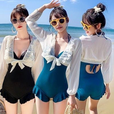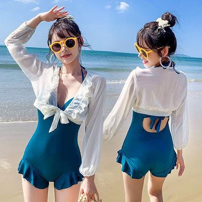 2024 ビーチツアー 二点セット 水着 オールインワン水着 日よけ パット付き ギャザリング ワイヤー大きいサイズ 韓国 水着 レディース スイムウェア セットアップ オールインワン