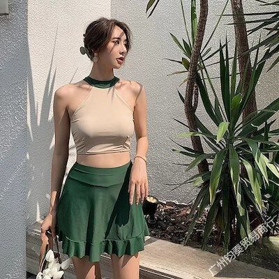 ビキニ ワンピース 体型カバー 水着 ラッシュガード 可愛い 修学旅行 温泉 韓国ワンピース水着女2025首掛け夏セパレート2点セット レディース 水着