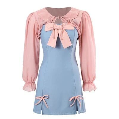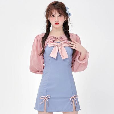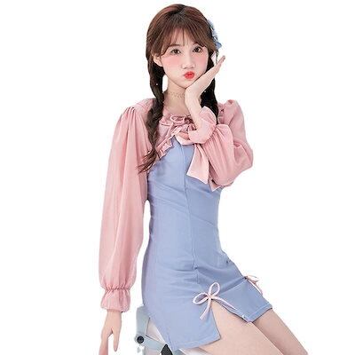 ワンピース 体型カバー 水着 ラッシュガード 修学旅行 温泉 可愛い 韓国 乙女温泉水着 ワンピース女性用新作甘い女の子背中見せ日焼け止め長袖スカート レディース 水着 【2点セット】夏
