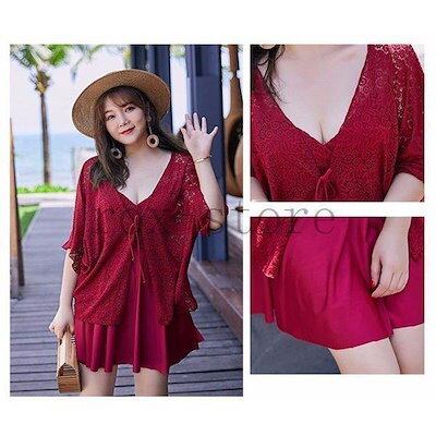 2点セット水着体型カバーぽっちゃり韓国大きいサイズ水着体型カバーレディース水着ワンピース秋新作