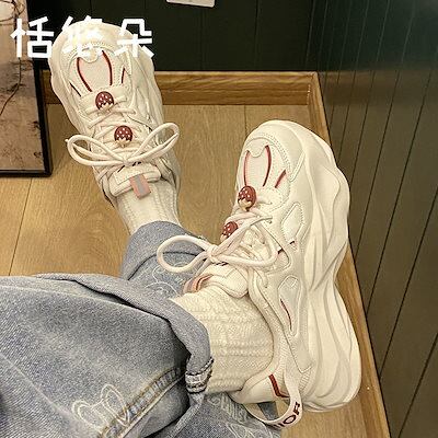 スニーカー白 運動 スニーカー通勤通学 ボリュームソール靴 厚底スニーカー ローカット レディース