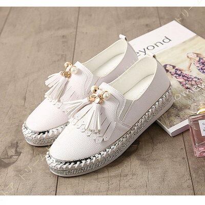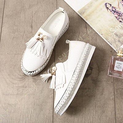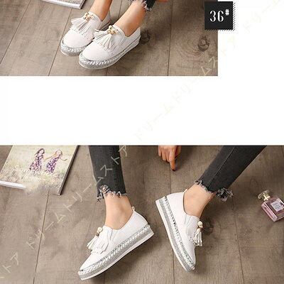 スリッポン スニーカー レディース 厚底 本革 白 黒 ローファー ローカット ぺたんこ靴 大きいサイズ フリンジ おしゃれ カジュアルシューズ フラットシューズ