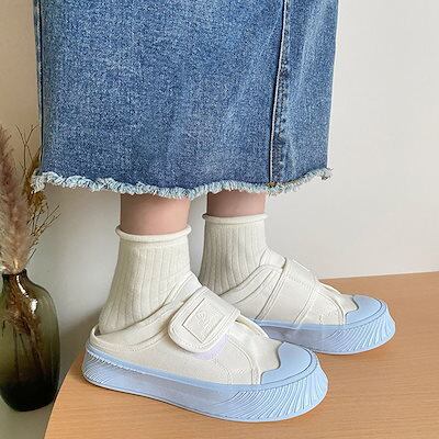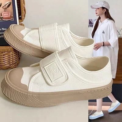 カジュアルシューズ新入荷ズック靴通気性マジックシール百掛けオールマッチかわいい白い靴