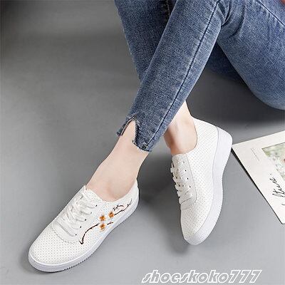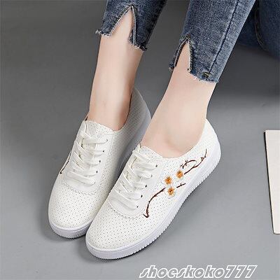 新規販売 数量限定 スニーカー レディース カジュアルシューズ ウォーキング 花柄 白 フラットヒール 運動靴 春夏 学生 通学 通勤 お出掛け かわいい女子靴 ポイントの使用