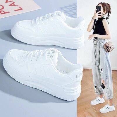 厚底の白い靴レディースシューズ23のオールマッチレザー23ファッションのの靴