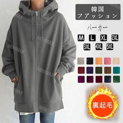 パーカー レディース ジップアップパーカー 重ね着風 ロング丈 パーカー フード付き 無地 秋冬 アウター 部屋着 大きいサイズ ゆったり
