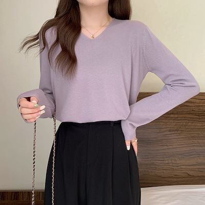 人気新作! 韓国レディースファッションニット 秋冬ニットセーター Vネック ニット 暖かい 長袖 ニットトップス インナー 通勤大きめサイズ カジュアルゆったり 着やせ