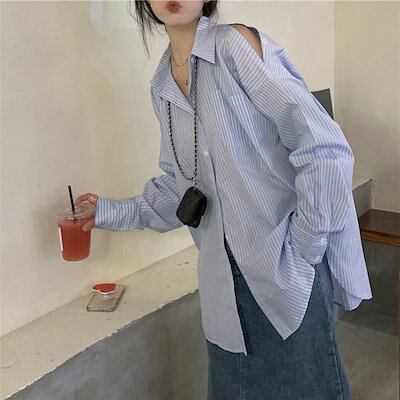 Tシャツ 韓国 新作 ブラウス シフォンブラウス シアーシャツ トップス シャツ シャツ レディース ロングシャツ シースルーシャツ 長袖 レディース シャツワンピース